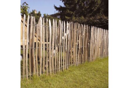 Een hekwerk van kastanjehout is duurzaam en heeft een mooie rustieke uitstraling. Bijpassende kastanjepalen zijn leverbaar. Een sfeervol en natuurlijk alternatief voor een houten of stenen erfafscheiding.