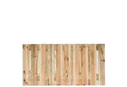Voordelig Tuinscherm Enschede is gemaakt van geïmpregneerd, geschaafd grenen hout, waardoor het duurzaam en bestand is tegen weersinvloeden. Dit tuinscherm bestaat uit 21 planken waarvan 19 verticale planken en 2 horizontale planken die stevig aan elkaar zijn geschroefd met RVS schroeven, hierdoor heeft het tuinscherm een erg robuust geheel.